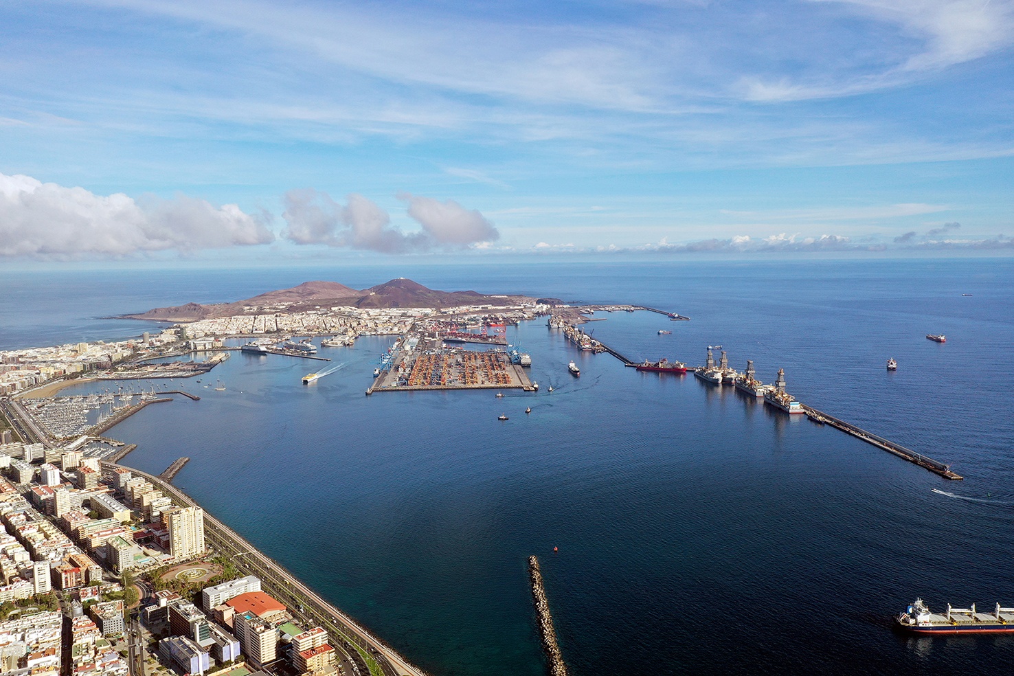 The port of Las Palmas has more than 15 km of berthing line with depths ranging from 3-45 m, ship-to-shore (STS) cranes, multipurpose docks and shipyard facilities. It is also undergoing a digital transformation through initiatives like Ports 4.0, which features real-time cargo tracking, paperless workflows, and AI-driven logistics systems.